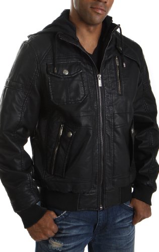 X-Ray Mens Faux Leather Bomber Jacket With Hood- Color Black Review